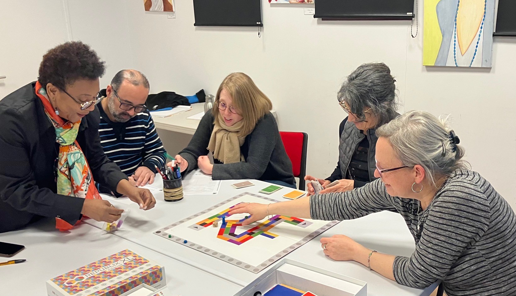 Les deux versions du jeu « REPUBLIX » et « REPUBLIX XL » ont été abordées en montrant tout un ensemble de déclinaisons d’activités modulables selon les niveaux des apprenants mais aussi selon les intentions pédagogiques et les situations d’enseignement ou d’animation dans le cadre d’ateliers autour du « vivre ensemble ».
